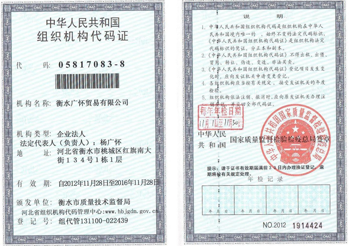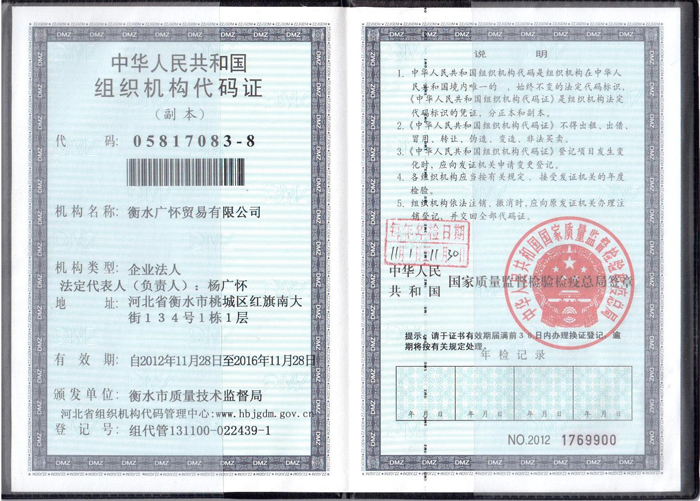 衡水广怀贸易有限公司组织机构代码证(正本)