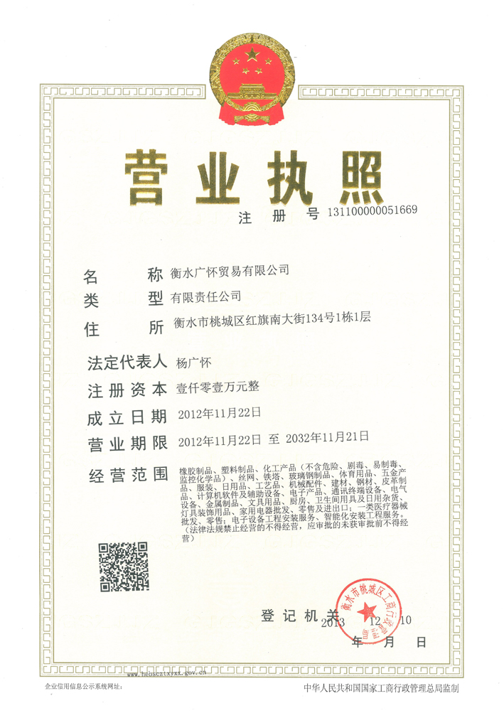 衡水广怀贸易有限公司企业法人营业执照(正本)